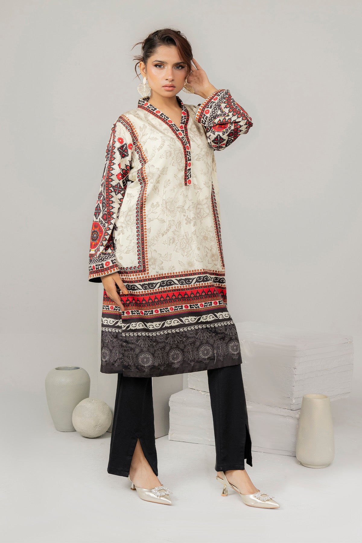 Experience the timeless elegance of traditional Pakistani fashion with this premium two-piece Bana Dora printed shalwar kameez set. Each outfit features meticulously crafted Bana Dora prints that reflect authentic cultural heritage and superior artisanal quality. The collection includes two complete ensembles, each comprising a gracefully designed kameez and matching shalwar in carefully selected fabrics. Perfect for daily wear, festive gatherings, or formal occasions, these pieces combine comfort with sophisticated style. The distinctive print patterns ensure you stand out while maintaining the refined aesthetic that defines quality ethnic wear. An investment in versatile, enduring pieces for your wardrobe.