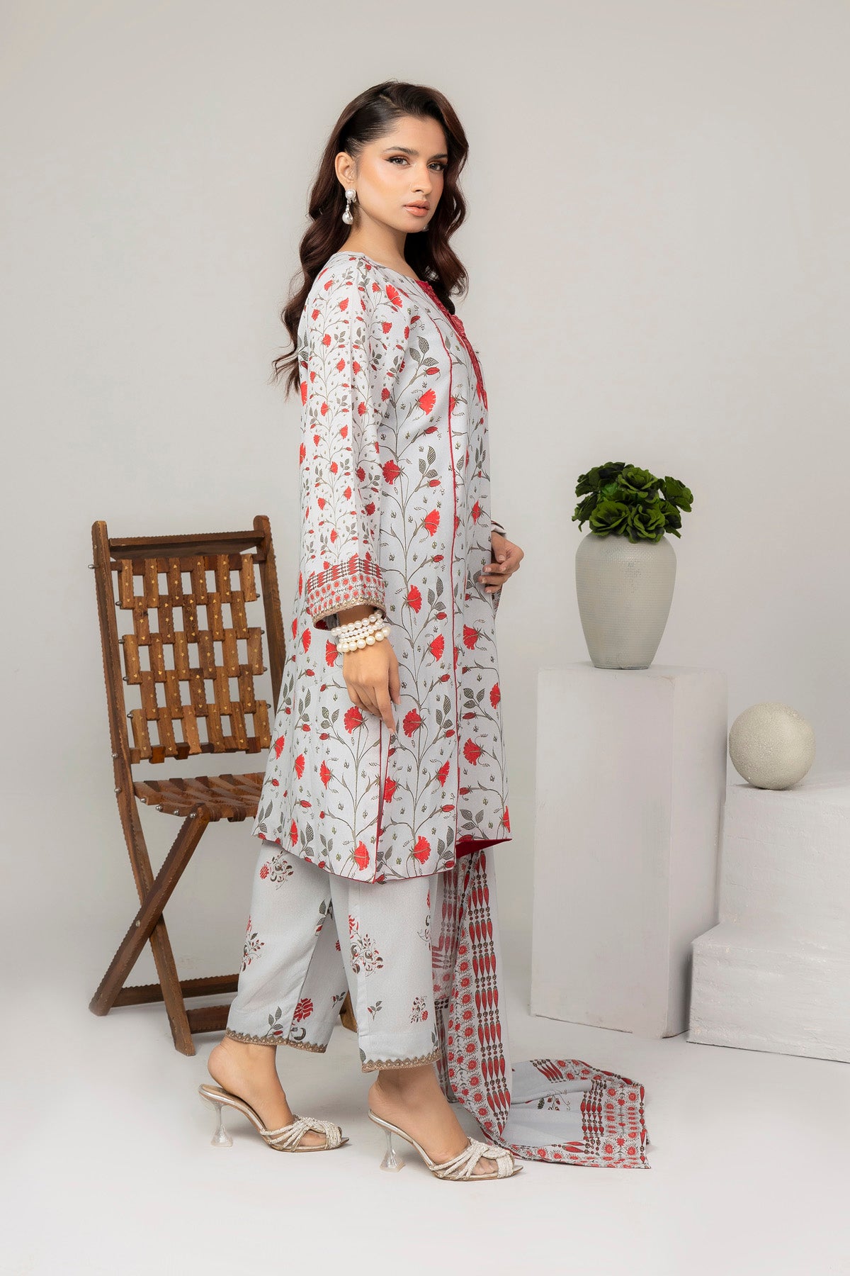This three-piece Karandi printed suit represents a timeless investment in quality ethnic wear. Karandi fabric, renowned for its weight and texture, drapes beautifully while maintaining its shape through repeated wear and washing. The printed design offers versatile styling options, seamlessly transitioning from daytime events to evening gatherings. The complete three-piece set includes coordinated pieces that work harmoniously together, eliminating guesswork from your styling choices. Ideal for those who appreciate authentic craftsmanship and seek pieces that withstand both time and trends, this suit delivers refined elegance with practical durability.