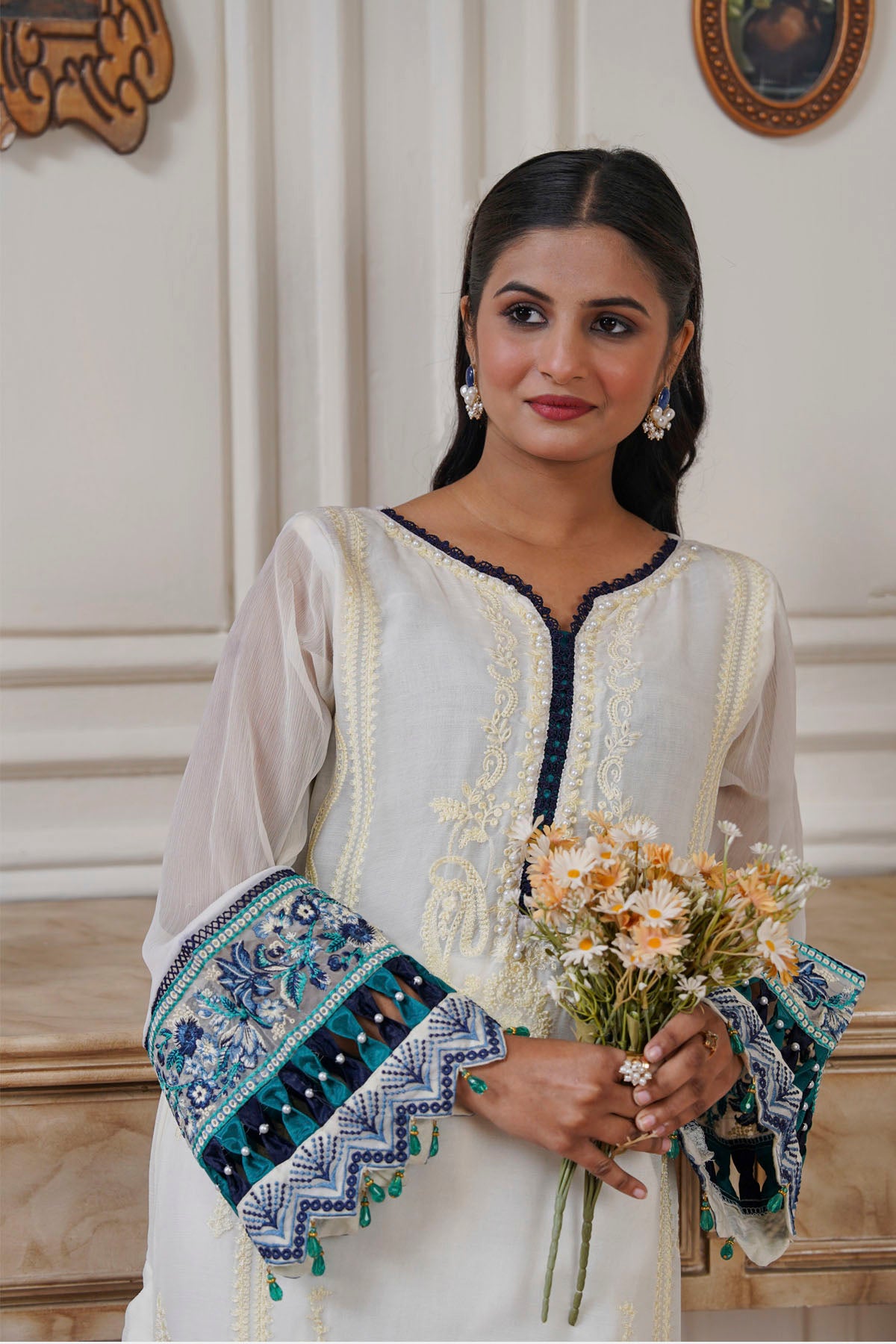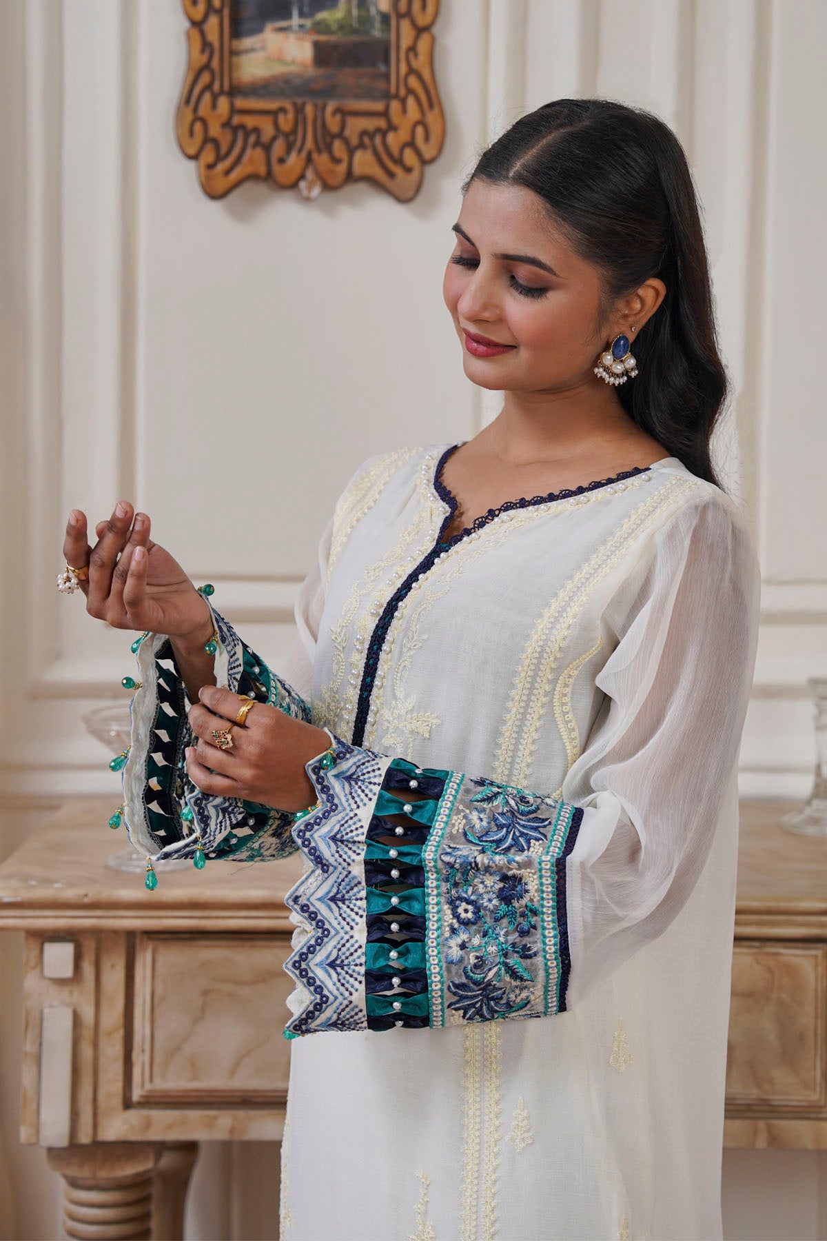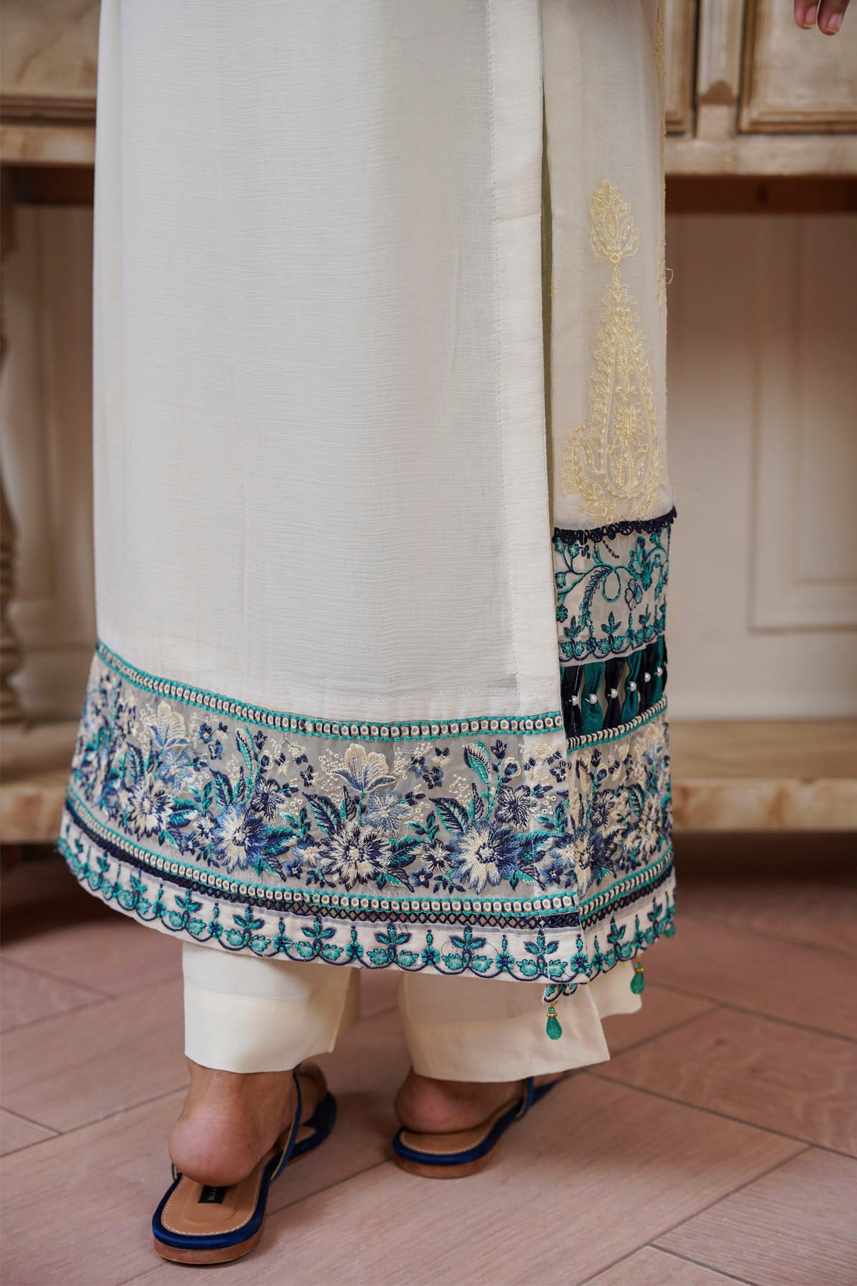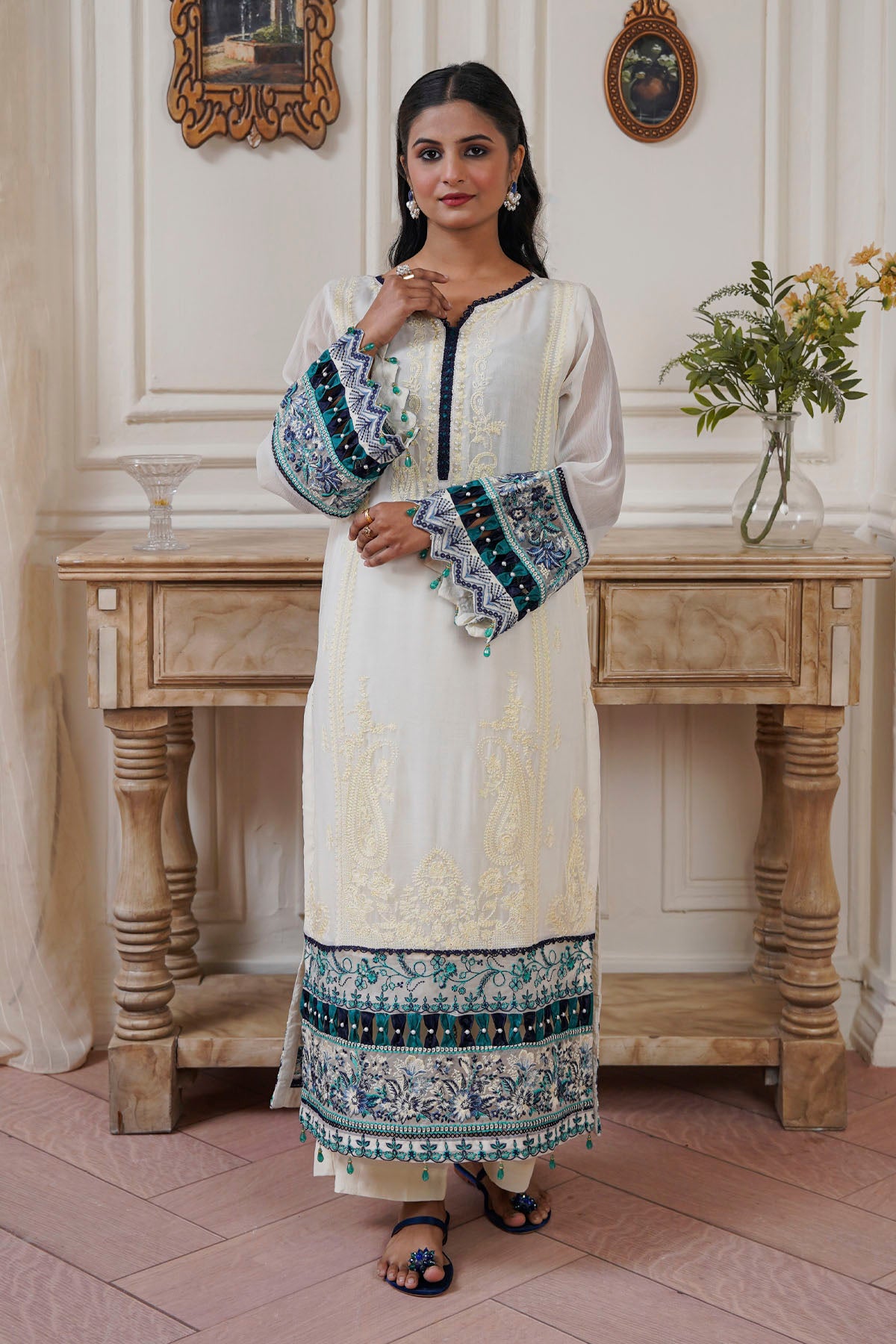 This exquisite 3-piece emerald suit represents a masterclass in traditional tailoring and contemporary design. Crafted with meticulous attention to detail, the collection includes a structured kurta, flowing trousers, and an elegantly draped dupatta in luxurious emerald fabric. Perfect for weddings, formal celebrations, and special occasions, this ensemble showcases refined craftsmanship and premium quality materials. The emerald hue—a timeless choice in South Asian fashion—complements diverse skin tones while projecting confidence and sophistication. Whether worn for intimate gatherings or grand events, this suit delivers the perfect balance of comfort, style, and understated elegance that discerning customers demand.