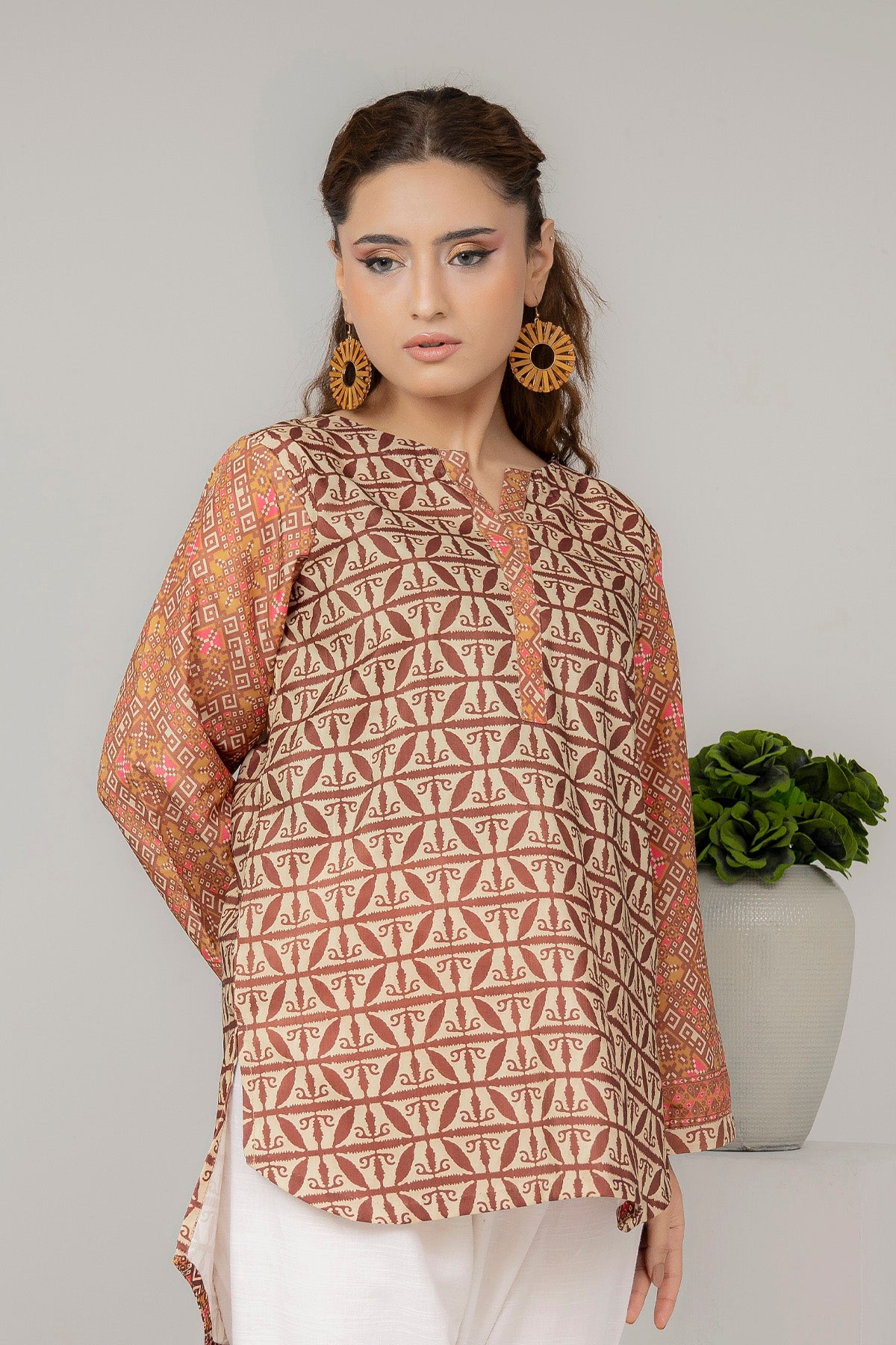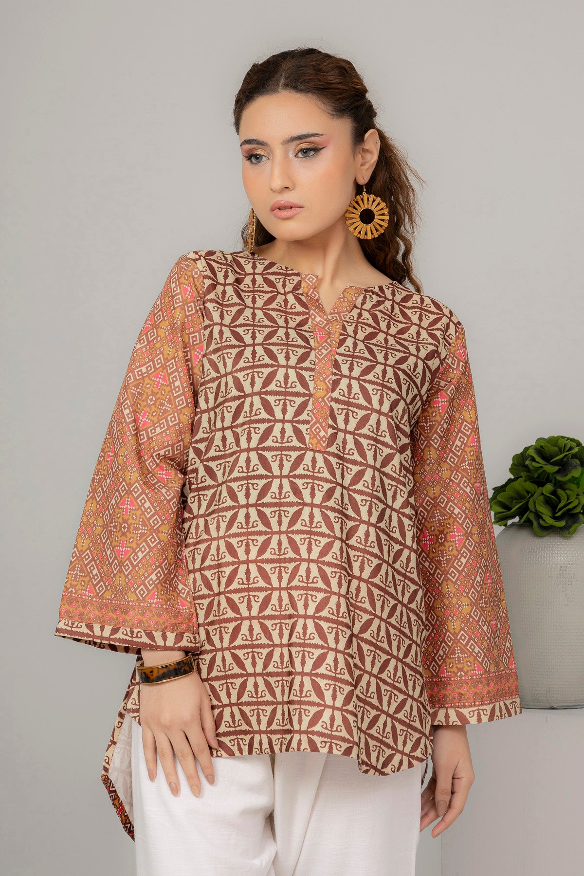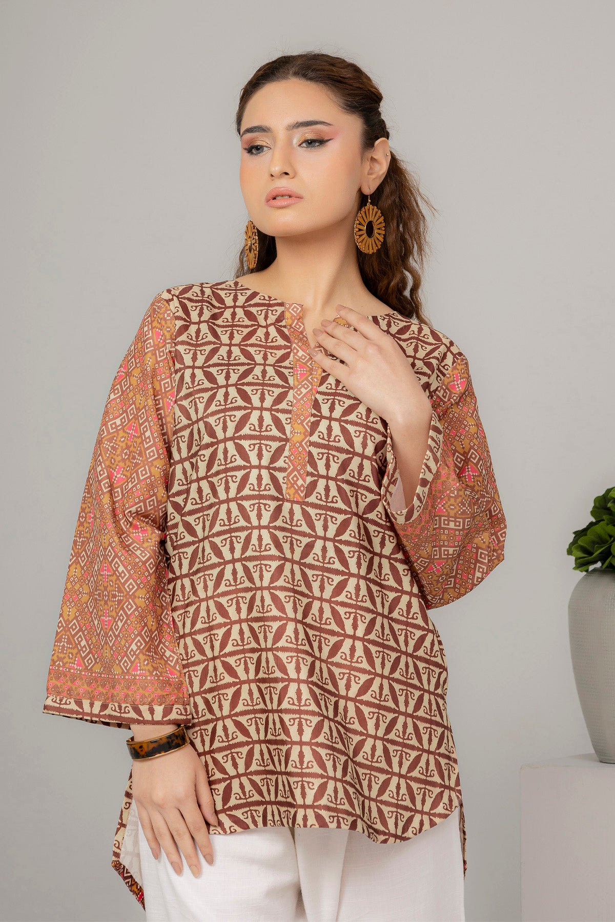Discover sophisticated style with our expertly curated printed kurti, designed for the modern woman who values both comfort and elegance. This piece showcases meticulously selected prints that reflect current fashion trends while honoring traditional craftsmanship. The high-quality fabric ensures durability and breathability, making it ideal for Pakistan's varied climate throughout the year. Whether you're attending social gatherings, heading to the office, or enjoying casual moments at home, this kurti adapts effortlessly to your lifestyle. The flattering cut and thoughtful construction provide all-day comfort without compromising on aesthetic appeal. Layer it with dupattas, shawls, or wear it standalone—this versatile essential deserves a prominent place in your collection.