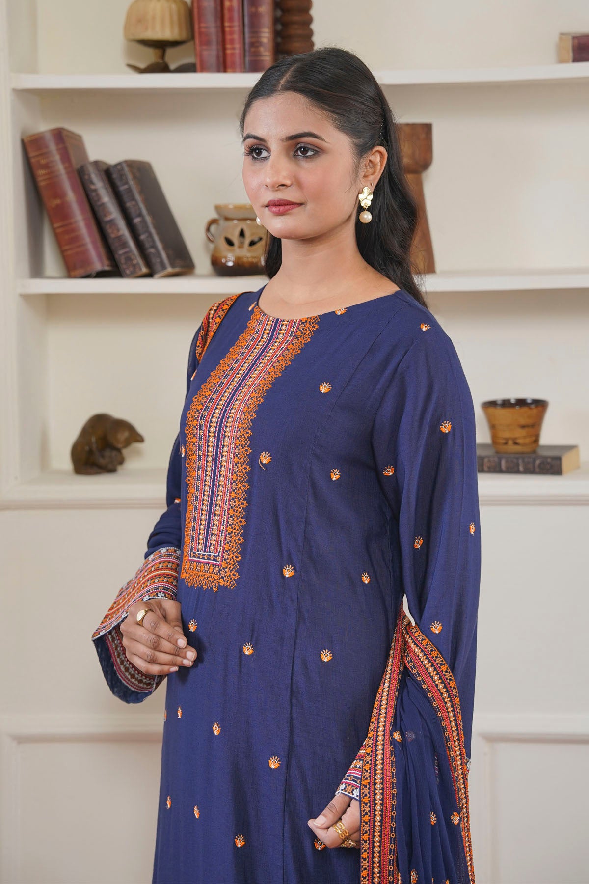 Experience the refined elegance of authentic slub khadar fabric in this distinguished three-piece collection. The natural texture of slub weave delivers exceptional comfort and breathability, while meticulous embroidery detailing showcases traditional artisanal craftsmanship. Each garment is thoughtfully constructed to offer versatility across occasions—from intimate gatherings to semi-formal events. The durable fabric composition ensures lasting wear and maintains its aesthetic appeal through repeated use. This curated set represents a harmonious blend of heritage textile techniques and contemporary design sensibilities, making it an essential choice for discerning individuals who value quality and authenticity in their wardrobe investments.